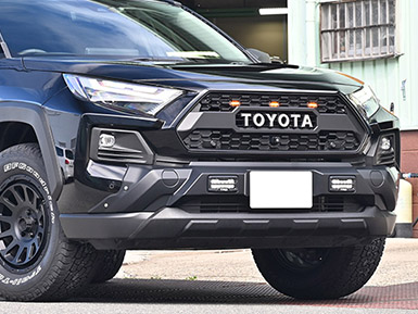 フロントグリルには、人気の「タコマ風グリル」を装着。この製品については、たくさんのお問い合わせをいただいています。よくある質問をまとめましたので、そちらをチェックしてください。