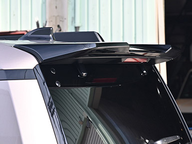 ルーフウイングもモデリスタさんの製品ですが、ブラックに塗装しています。これは、純正のウイングがブラックだったので、それと同じ雰囲気を再現するためにブラックで塗っています。