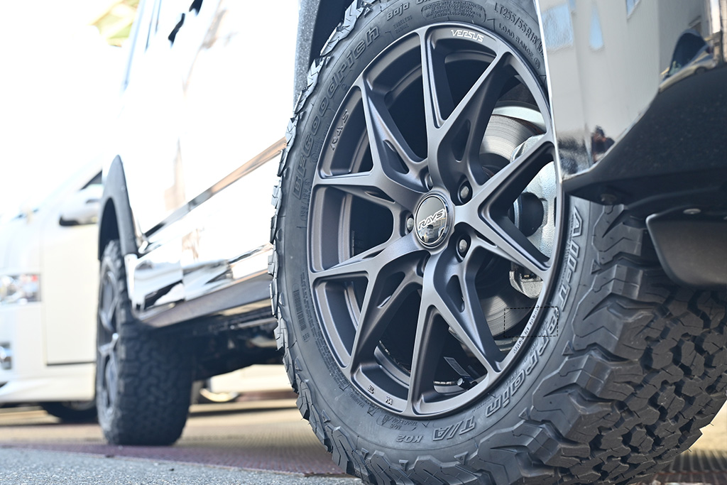 タイヤは、BFグッドリッチさんの「オールテレーンA/T KO2」で、サイズは255/55R18。